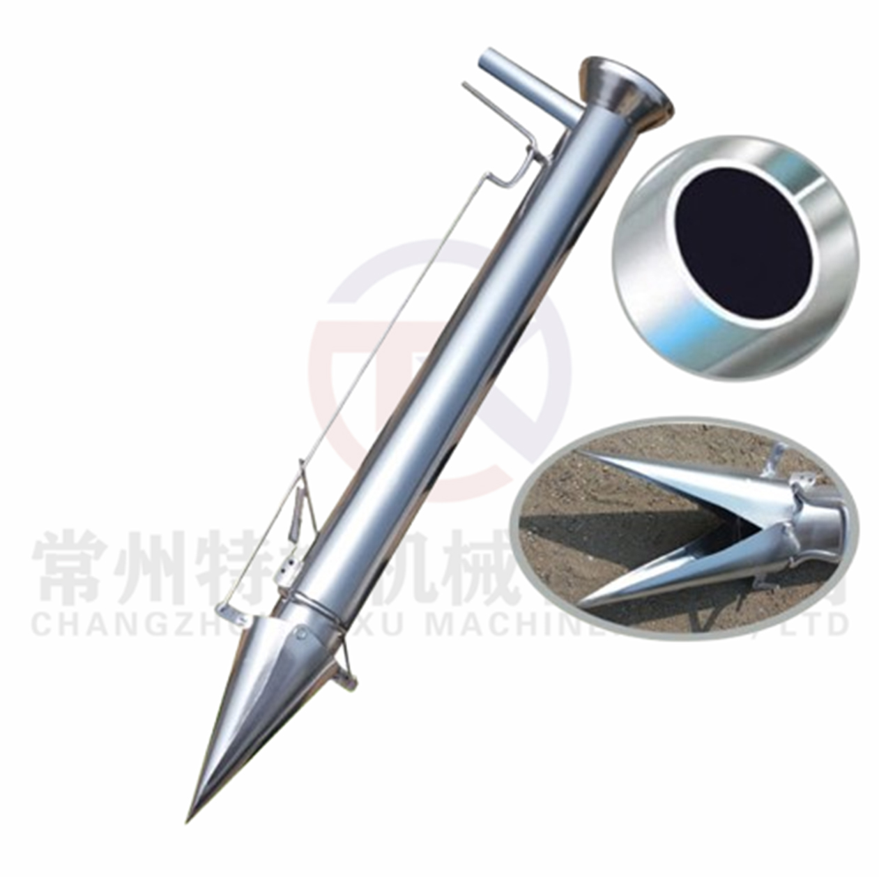 2,put the seeds into seeds box,then hold the planter and plug the sharp mouth into the soil(the depth is adjustable),buttoning the wrench and lifting the planter to finish the planting.